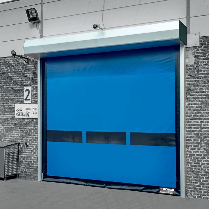 El rápido ciclo de la puerta, combinado con la tecnología de accionamiento push-pull, garantiza la continuación ininterrumpida de sus actividades de producción, transporte o logística, incluso en condiciones meteorológicas adversas. - Dynaco