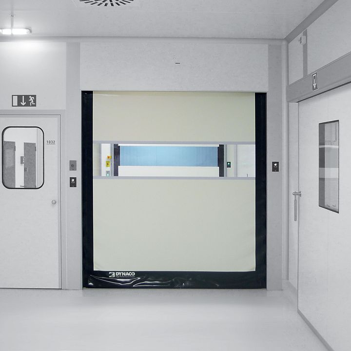 La puerta rápida enrollable flexible es ideal para cerrar herméticamente las salas blancas. Mantiene los niveles de presión estables, evita los contaminantes y limita el consumo de aire.