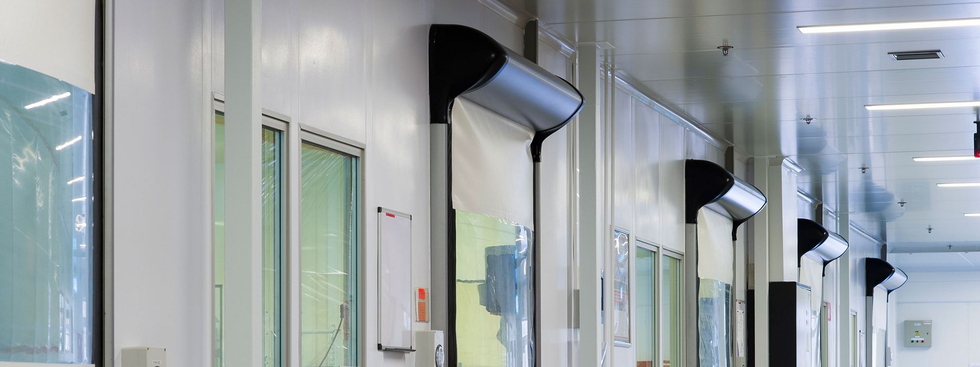 Portes rapides à enroulement Dynaco pour les applications en salle propre.
