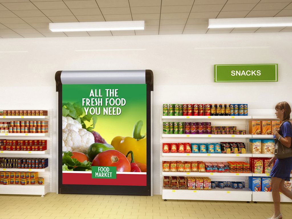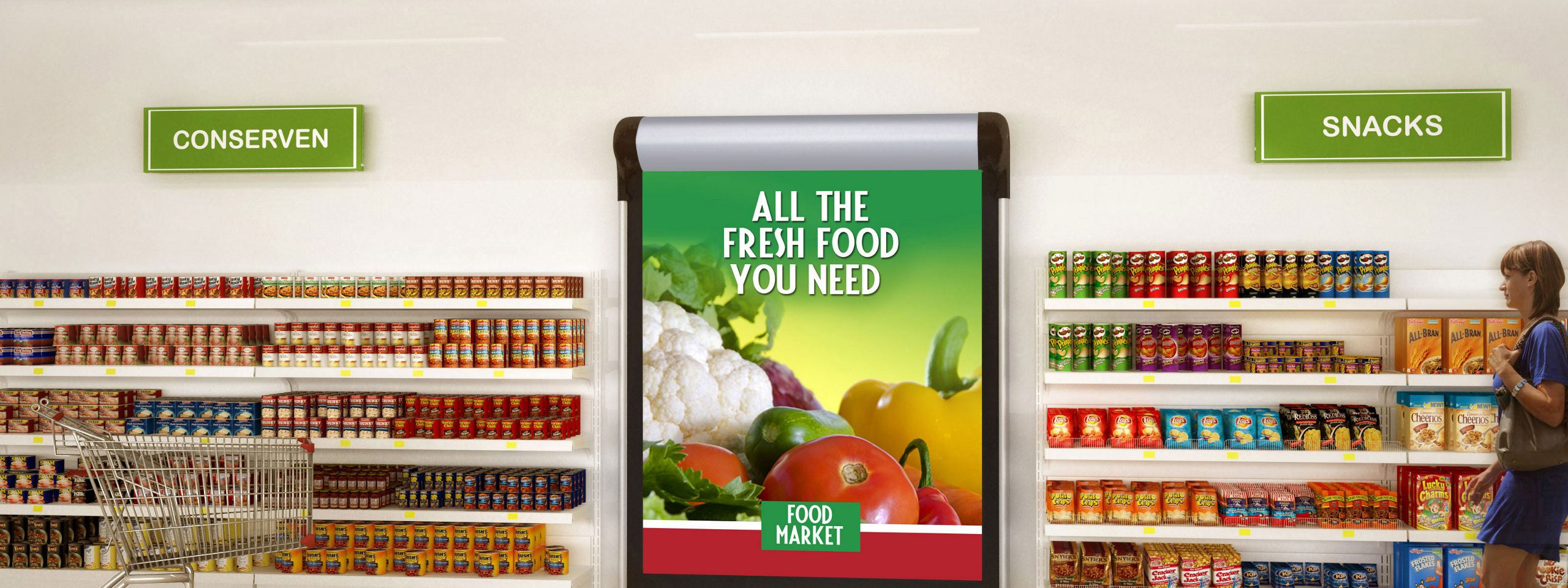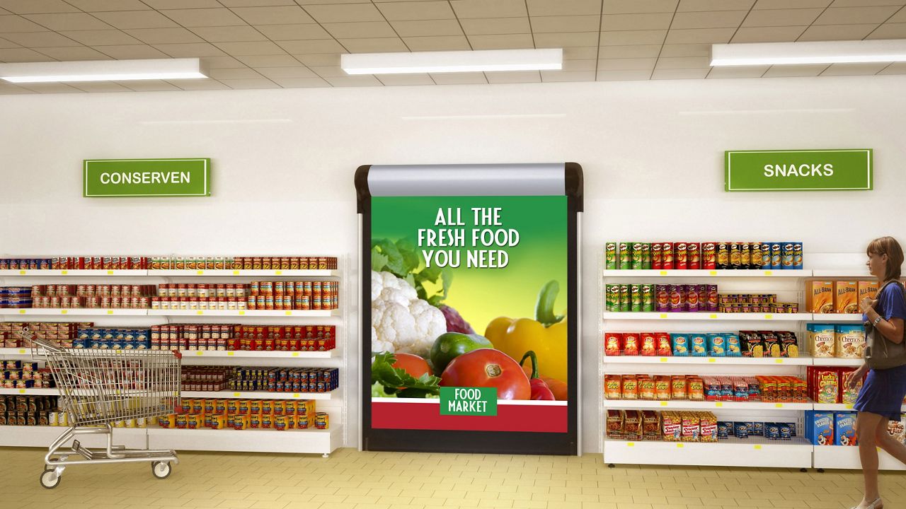 Una porta Dynaco richiede pochissimo spazio. In questo modo sfrutti in modo ottimale lo spazio disponibile come superficie di vendita. La porta si apre e si chiude in modo completamente automatico. La porta Dynaco funziona così bene che vi potete perfino dimenticare che sia presente. Inoltre, una porta con telo serigrafato risulta un modo efficiente per utilizzare la porta come spazio pubblicitario.