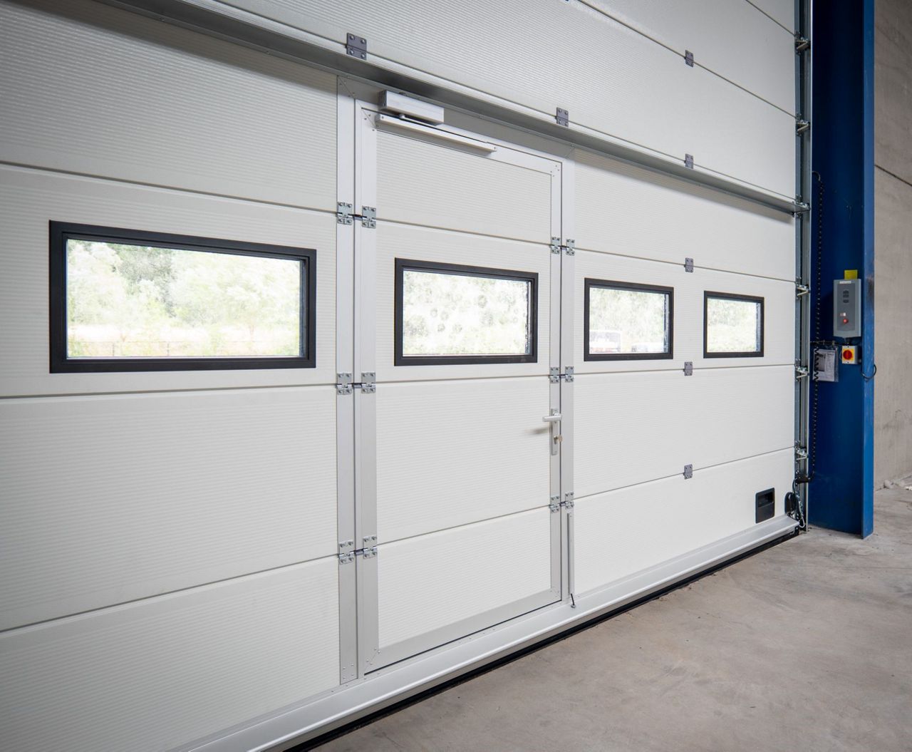 Elke deur is uitgerust met een sectie met ramen voor natuurlijke lichtinval en een geïntegreerde loopdeur om het personeel gemakkelijker te laten circuleren zonder de volledige poort te openen. Daarnaast werd een codeklavier toegevoegd om veilige en praktische buitentoegang te garanderen.