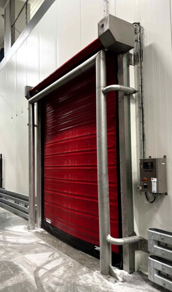 Optioneel kan de deur worden uitgerust met een extra geïsoleerd doek, dat een versterkte thermische barrière tussen de zones vormt. Dit systeem beperkt ijs- en condensvorming, wat zorgt voor een veiligere en efficiëntere werkomgeving. Voor de klant betekent dit een betrouwbaardere, schonere en onderhoudsvriendelijkere locatie.