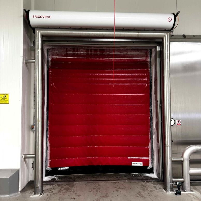 Installatie van een Dynaco M2 Freezer snelloopdeur door Kolbud, ideaal voor vriesomgevingen. Dankzij het verwarmingssysteem, de uitstekende afdichting en het zelfherstellende deurblad biedt de deur optimale energie-efficiëntie, voorkomt ijsafzetting en garandeert maximale veiligheid.
